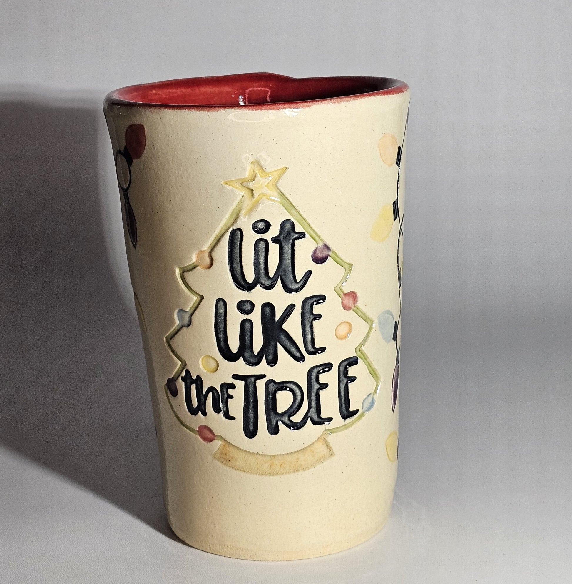 Light up your home this season with this handmade Lit Like The Tree Cup! Its charmingly embossed Christmas tree and lights will add festive cheer to any occasion. This cheerful cup is sure to make your holiday season shine! ☃️